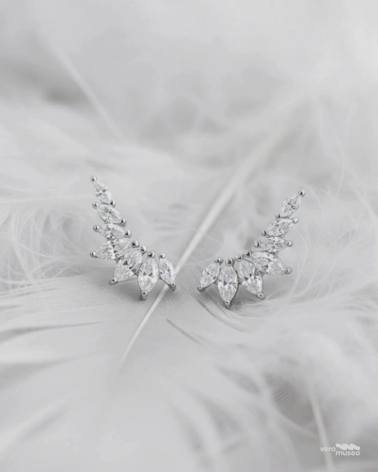 Light as air, sharp as intention. These crawlers climb your ear like a quill drawn across paper, tracing the curve on your earlobe. It’s time to take flight.
